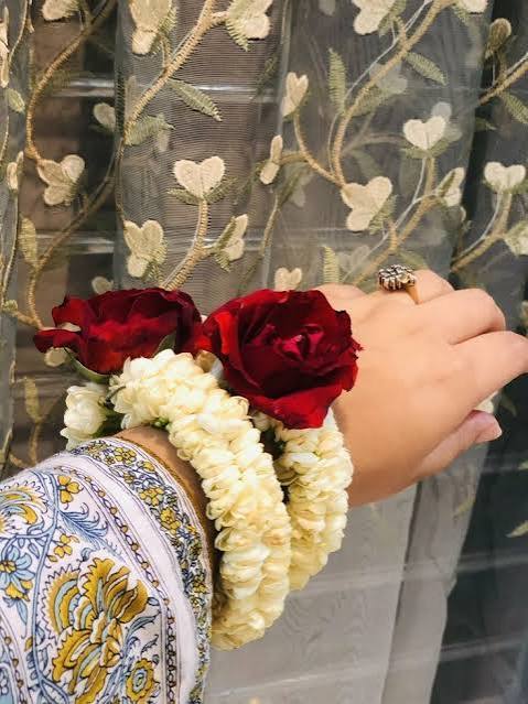Embrace traditional elegance with this Red Rose & Gajra Style Haath Phool Set, beautifully handcrafted using realistic artificial red roses and white jasmine-style gajra flowers. Perfect for mehendi, haldi, wedding, or festive occasions, this design blends timeless charm with modern comfort. The soft elastic band ensures a snug and secure fit, making it ideal for brides and bridesmaids seeking a graceful ethnic touch.