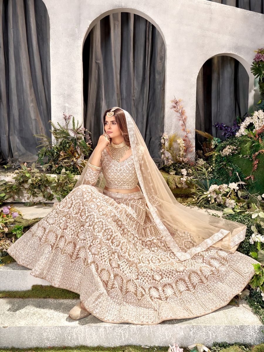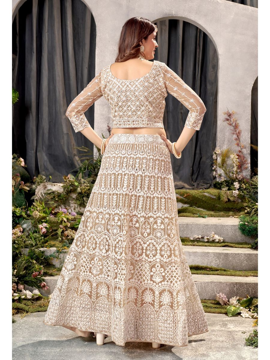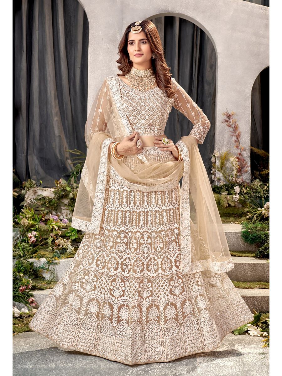 Keywords for SEO: beige embroidered lehenga, semi-stitched lehenga set, lehenga choli with dupatta, wedding lehenga for women, traditional festive outfit, e