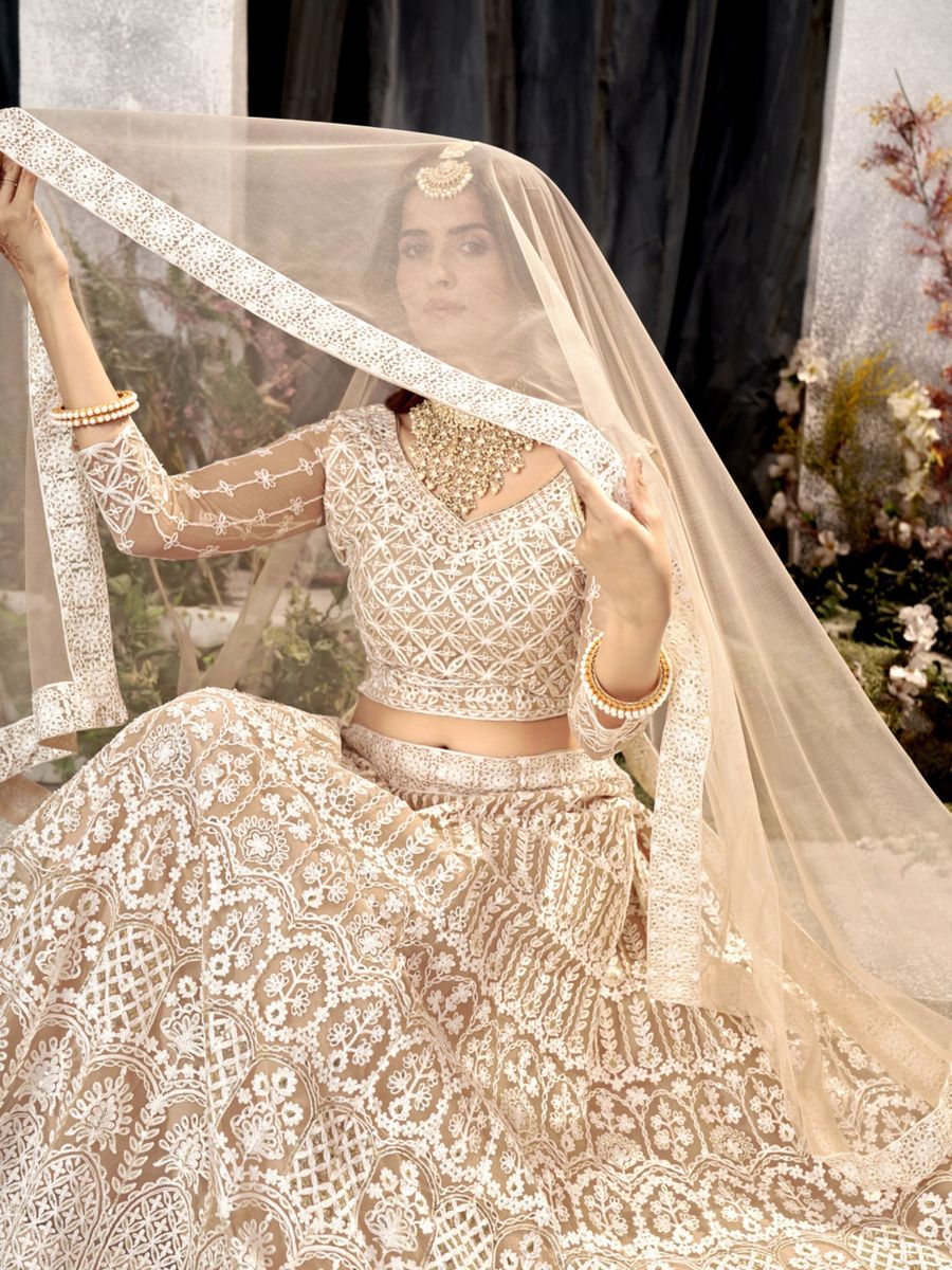 The soft beige tone gives it a sophisticated and graceful appeal, perfect for weddings, receptions, festive occasions, and traditional celebrations. Pair it with ethnic jewelry and heels for a complete, royal-inspired look.